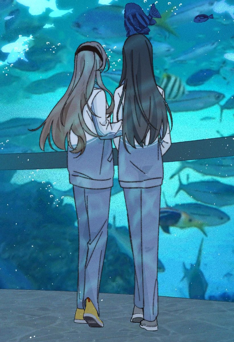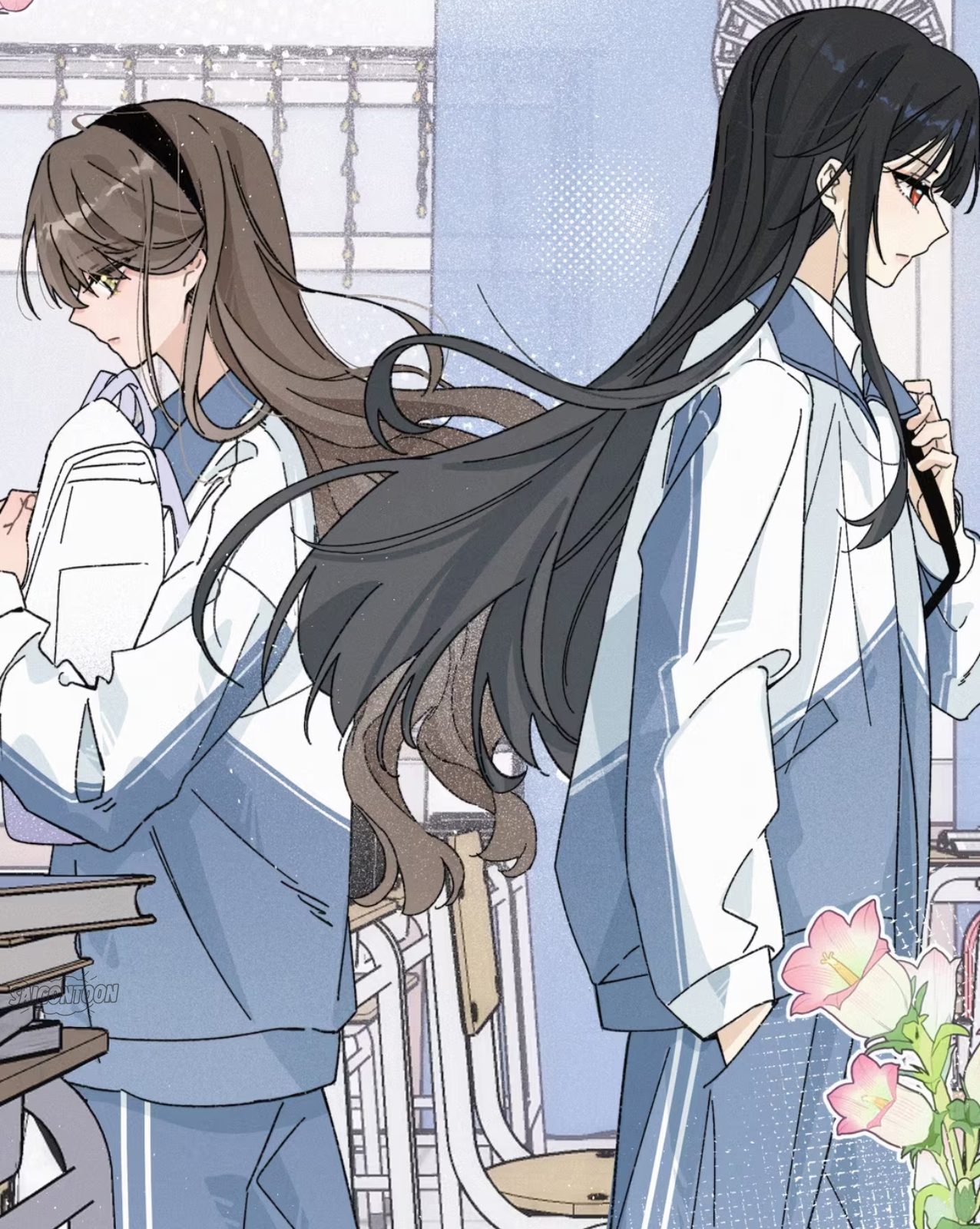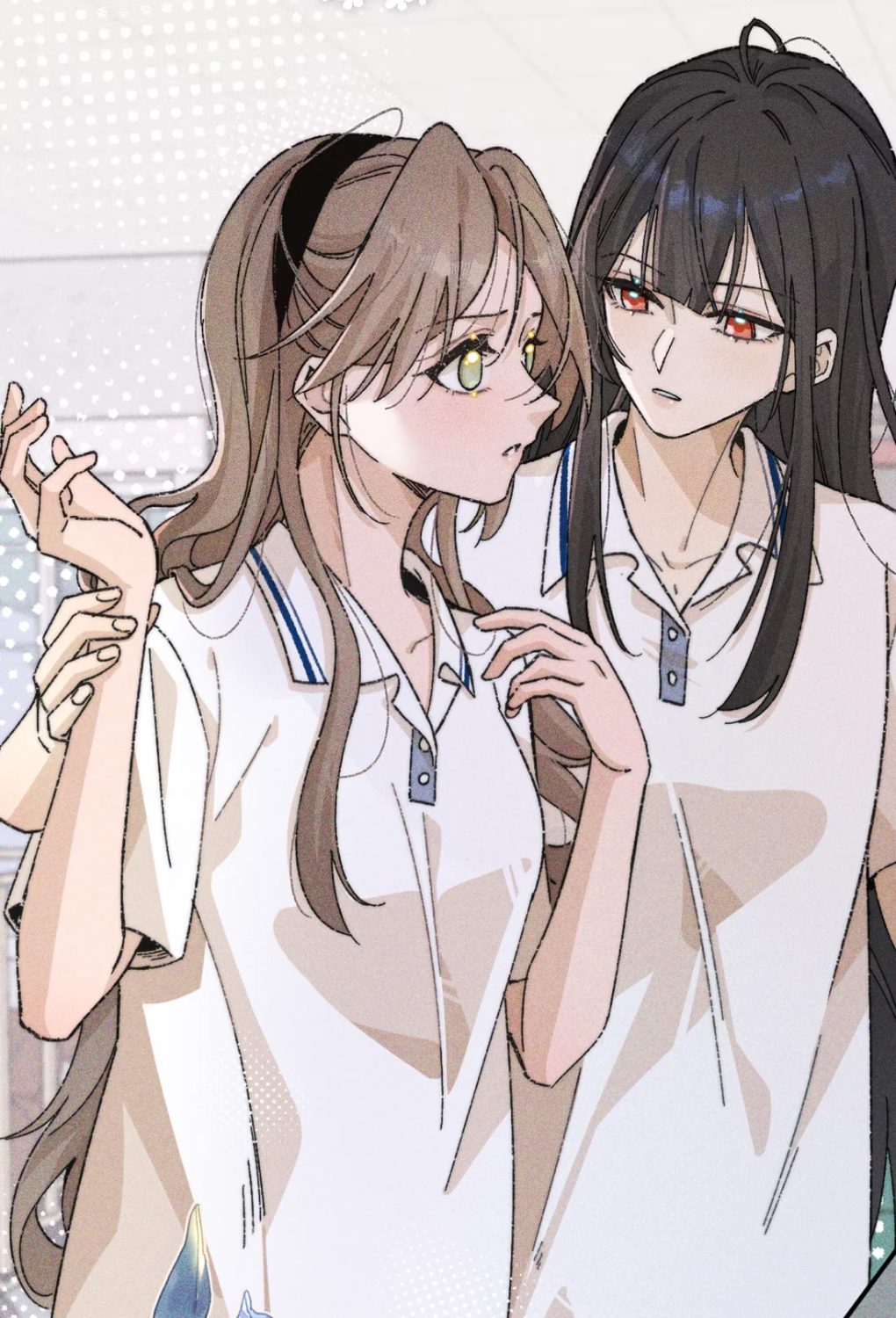 Trong phòng thiết bị thể thao của trường, hai nữa sinh áp sát vào nhau.